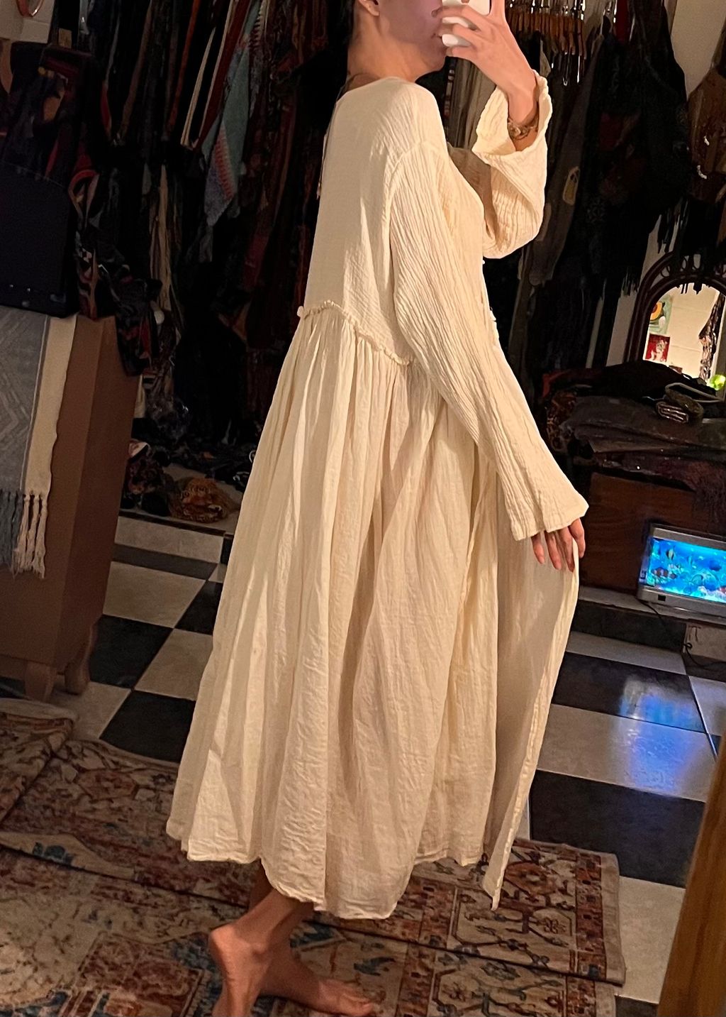 泰國 棉麻 純棉 文藝風 連身裙 洋裝 外套 長外套 開襟 罩衫 米白色
